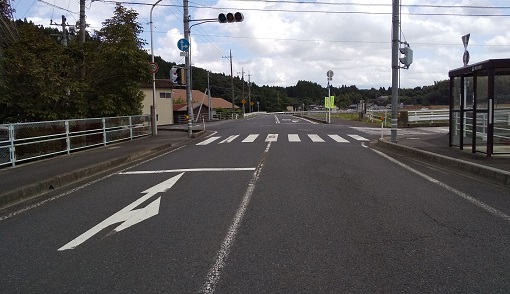 現地は信号もなく、交通量はほぼ無し、田園が広がる景色です。