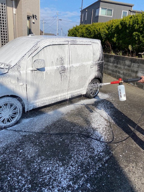 ケルヒャーK3という洗浄機とMJJCというモコモコの泡が出る道具を使用しました。