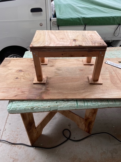 まず足を4本作製しました。38mmの角材でかなりしっかりしています。