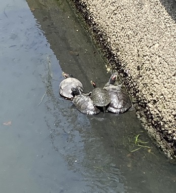 亀たちも日向ぼっこしてました。