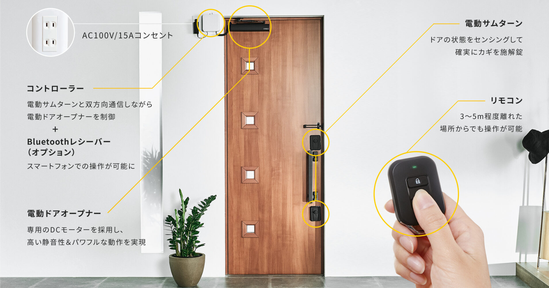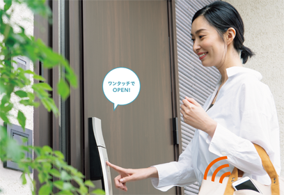 玄関ドアの手前からでもリモコン1つで鍵の施開錠、ドアの開閉が可能!