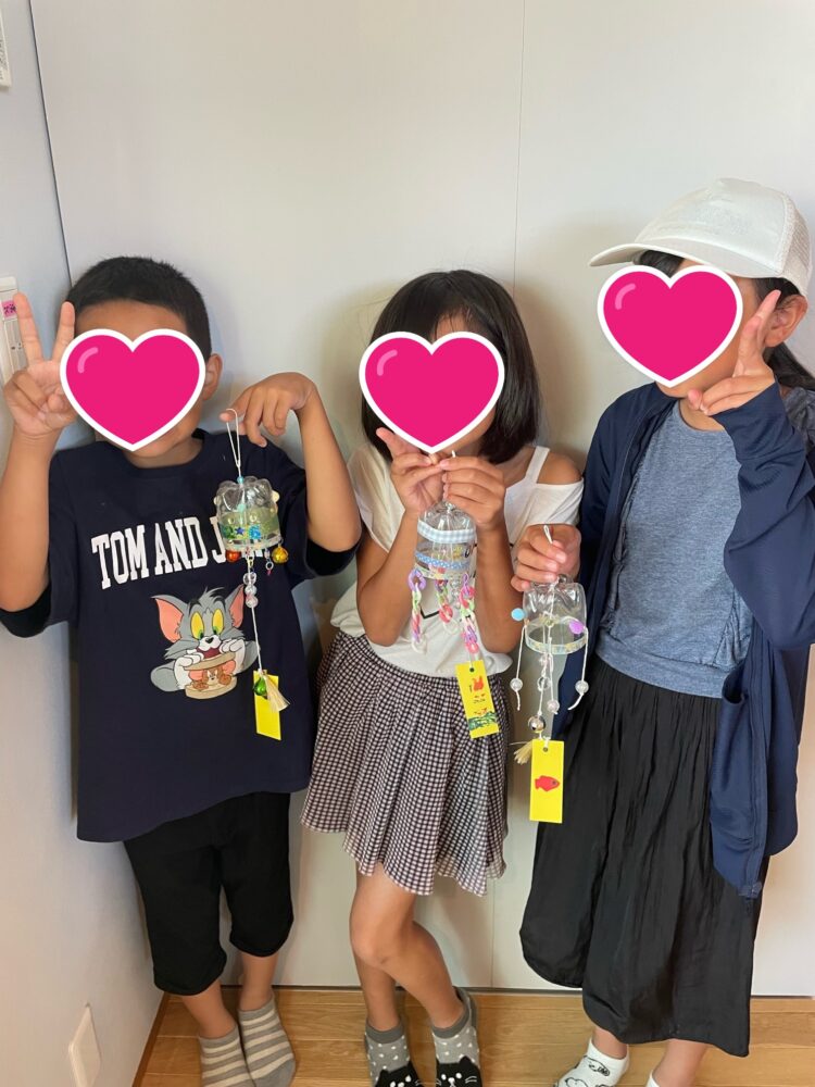 みなさん、黙々と作業に取り組んでいて、個性的で素敵な風鈴に仕上がりました(^▽^)/