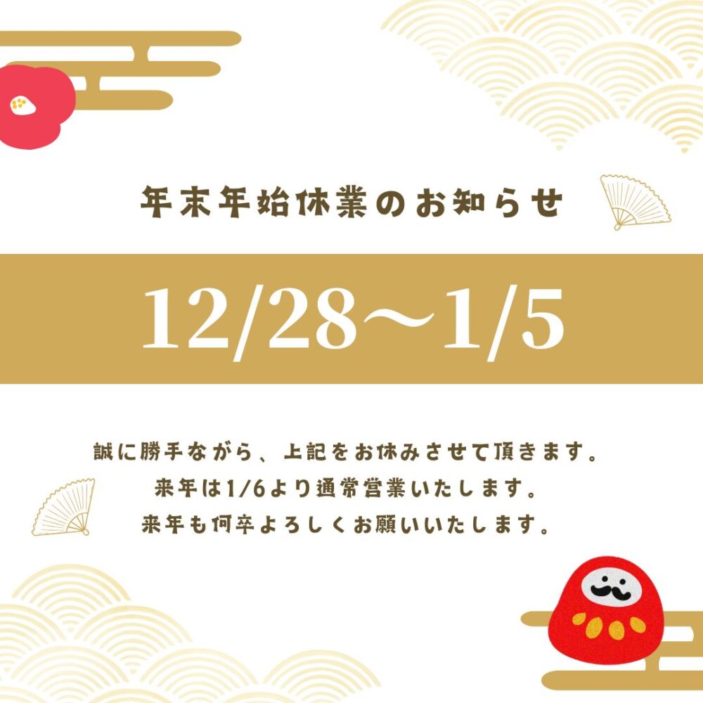 2024.12.28(土)~2025.1.5(日)まで年末年始の休業期間とさせていただきます。