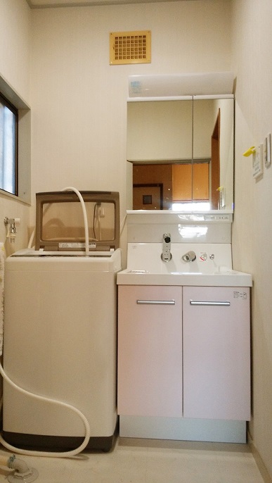 ・洗面台の入替と同時にクロスも張替え雰囲気を一新。