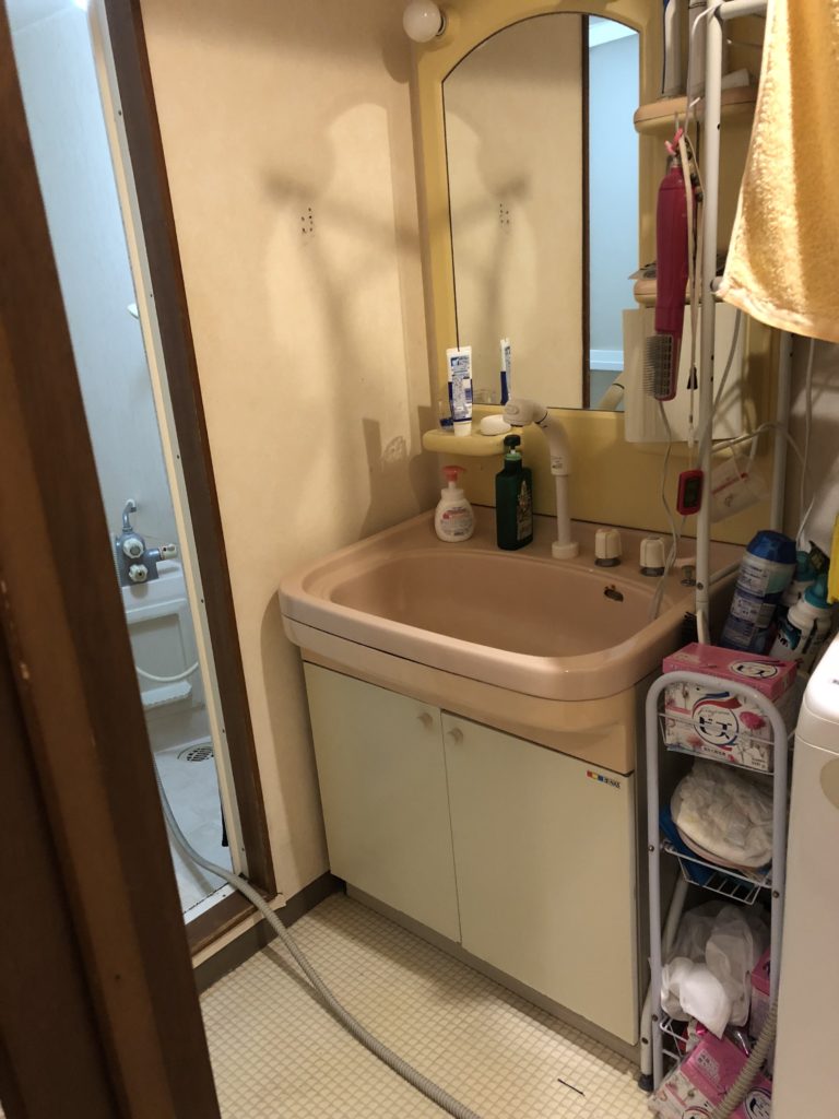 洗面室洗面台を入れ替え、鏡も広々で収納力もUP!