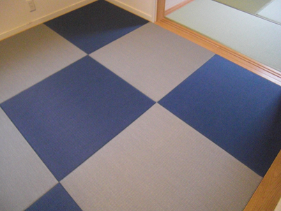 オシャレなカラー畳を市松模様に配置して、スタイリッシュな和室になりました。