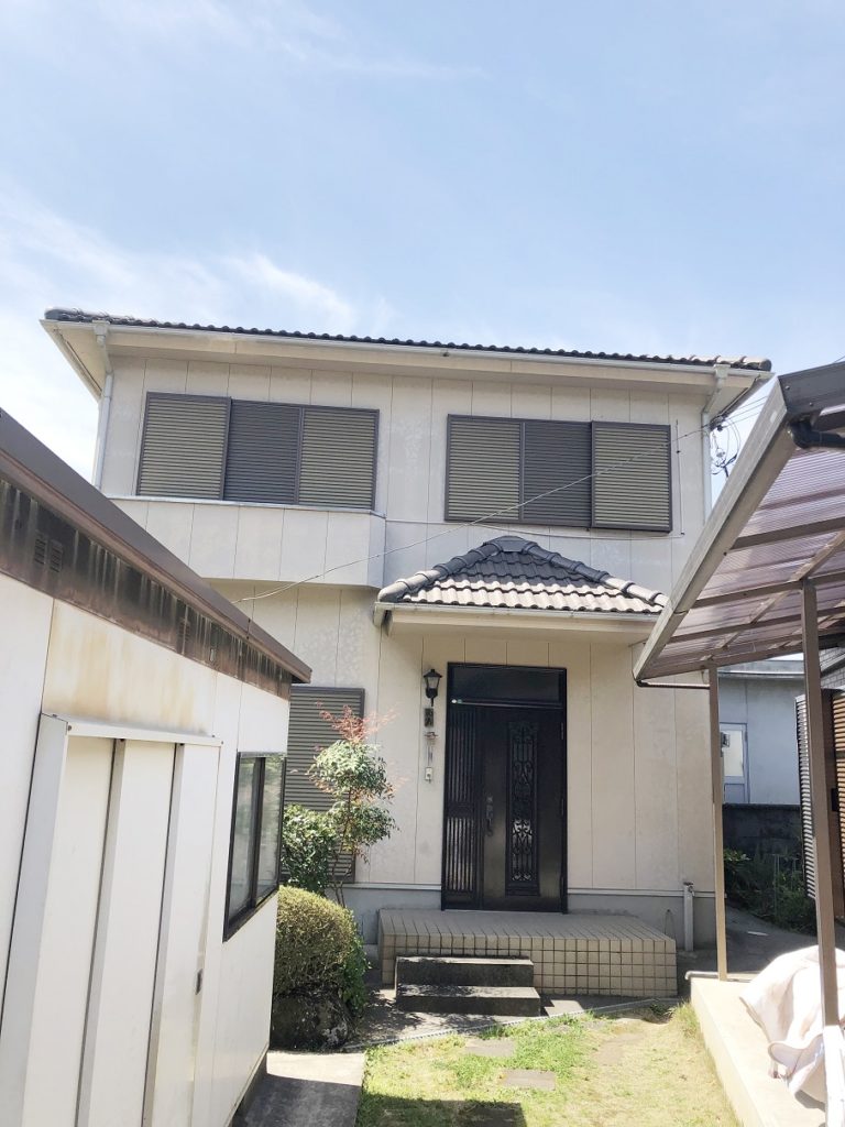 外壁外壁にシミのような模様ができていました。コーキングをしっかり打ち直し、軒天・樋・破風もしっかり塗装しました。