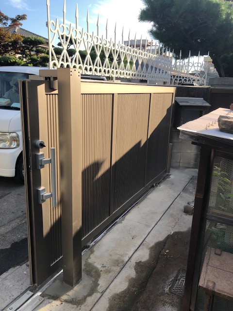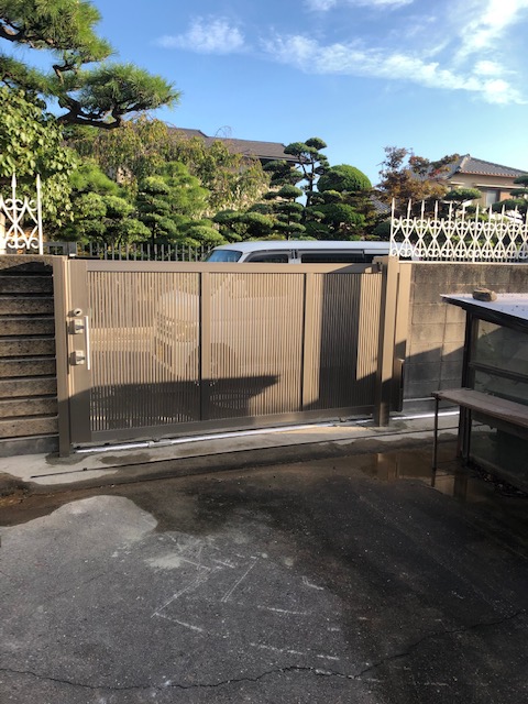 ・門扉は開け閉めが重たくて大変だったものから、レールごとやり直し、軽い門扉へ取り替え。