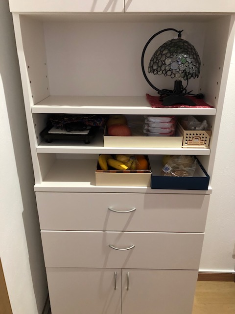 毎日使わない卓上コンロ・圧力鍋・食器 他、冷蔵庫に入れる迄もない野菜・果物・乾物等を片付ける収納をお探し。