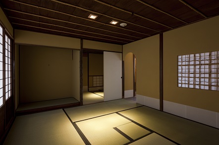 江戸時代後期(幕末頃)の武家茶屋で、四畳半の主茶室・二畳の小間・三畳の寄付水屋で