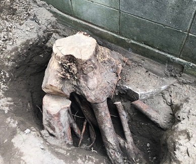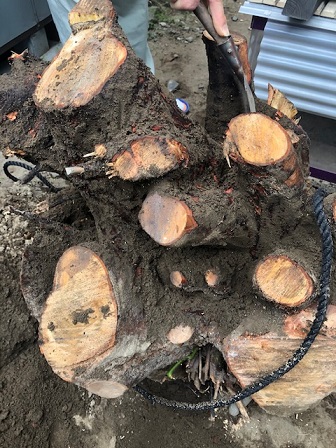 周りの土を掘り進め、大きな切り株を撤去しました。