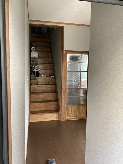 玄関入って階段横にあった壁を取り、空間が広くなりました。