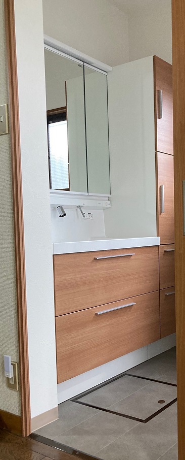洗面台も沢山収納ができる物に入れ替え、お風呂はユニットバスに交換。