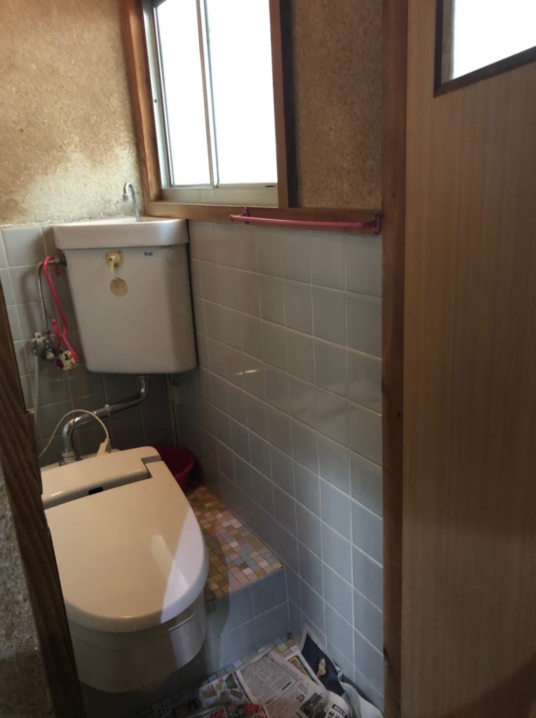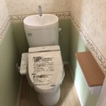 TOTOピュアレスト採用。タイル張りからクロス張りへ変更し、明るいトイレに変身しました。床はクッションフロアを張り、お掃除しやすくしました。